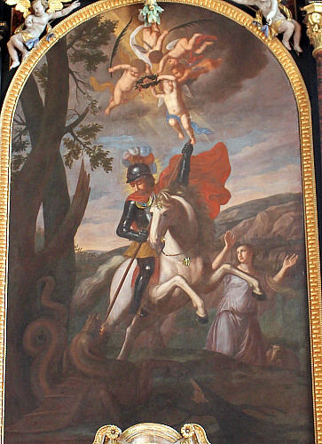 Altarblatt als Drachentöter abgebildet.