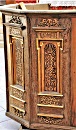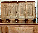 An den Seitenwänden des Altarraums steht das mit Schnitzereien verzierte