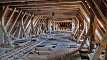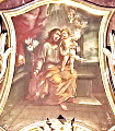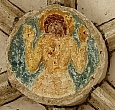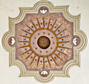 im Kirchenschiff ein mit Orna-menten bemaltes Tonnen-gewölbe.