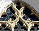 Außenseite und die spitzbogigen Fenster mit Maßwerk. Der tiefe