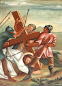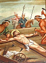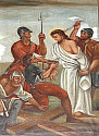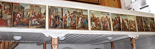 Darüber hängen zwölf große, ovale Apostelbilder