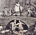 die in reiche Gewänder gekleidet sind; in der oberen Halfte der