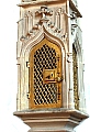 aus Sandstein mit vergoldetem Türchen, dreiseitigen Fialen,