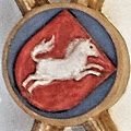 - das Kleid des Veit rot, heute blau auf Silber.