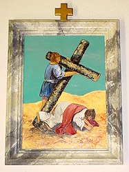 Seinen Ursprung hat der Kreuzweg im Brauch der Pilger, bei Wallfahrten nach Jerusalem den Leidensweg Jesu auf der "Via Dolorosa" nachzugehen. Im späten Mittelalter wurde die Kreuzver-ehrung insbesondere durch den hl.Franziskus von Assisi gefördert, der durch die Stimme des Gekreuzigten vom Kreuz in St.Damiano zu einem christlichen Leben bekehrt wurde. Seit dieser Zeit wurden Kreuzwegandachten als Ersatz für die Pilgerfahrt ins Heilige Land abgehalten. Die Stationen bildeten dafür die Leidensstätten Jesu nach. Auf diese Weise konnte der letzte Weg Jesu vor Ort nachgegangen und sein Leiden anschaulicher betrachtet werden. Kreuzwegdarstellungen in Deutschland entstanden erstmals in und bei Klosterkirchen, auf Anhöhen und bei Wallfahrtsorten, insbesondere in der Nähe von Franziskanerklöstern. Mit der Wende vom 17. zum 18. Jahrhundert hielten sie als Kreuzwegbilder Einzug in die Innenräume der Pfarrkirchen und verbreiteten sich zunehmend. Papst Clemens XII. erkannte im Jahr 1731 mit seinem Breve "Unterweisungen über die Art, wie man den Kreuzweg abhalten soll" diese Form des Kreuzwegs als kanonisch an und bedachte ihn mit großzügigen Ablässen.