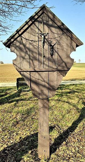 Kreuz in der Nähe des Hohlwegs Branden Das Kreuz der Fam. Großmann-Neuhäusler stand früher am Hof in Pasenbach, zurück bis es durch ein neues Hofkreuz ersetzt wurde. Rückseite des Wegkreuzes Hohlweg am Branden