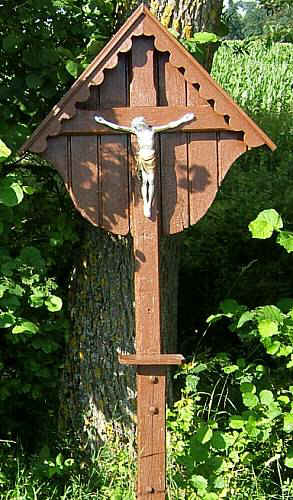 Feldkreuz stand am Feld- und Spazierweg entlang des Biberbachs in Richtung