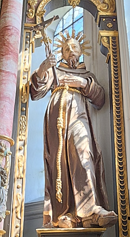 Franziskus ist in der braunen Kutte der Franziskaner abgebildet.