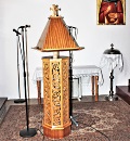 schön gestalteten Überbau angebracht. Die neuen Kerzen werden