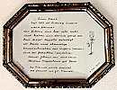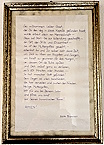 An der Wand hängen verschiedene Bilder und gerahmte Widmungen.