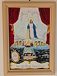 mit einer Muttergottesfigur und zwei davor stehenden Holzleuchtern. Das