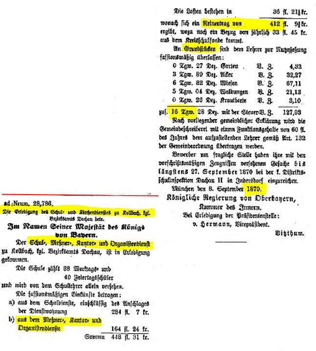 Ausschreibg Mesner-Lehrer-Organistendienst - Königl.Kreis-Amtsblatt von Obb v.10.9.1870 |