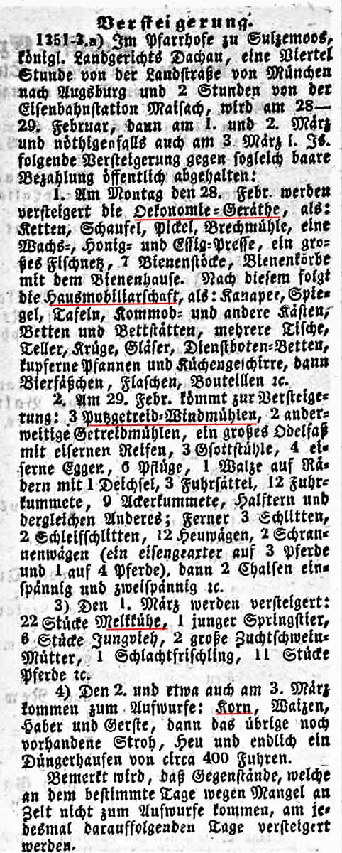 der Vermögensgegenstände von Pfr.Kammerlohr Recherchiert von Hans Schertl Versteigerung