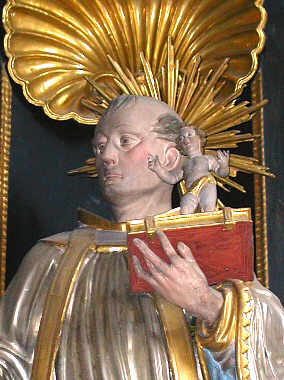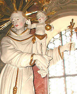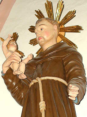 Nach einem Sprachkurs in der Einsiedlei Monte Paolo wurde er 1222 zum Priester geweiht. Als Sprecher der Neugeweihten hielt er eine beeindruckende Rede und wurde als Prediger entdeckt. Man beauftragte ihn 1222 bis 1224 in Rimini und Mailand mit den Mampf gegen die Katharer und Albigenser, die die Armut und Enthaltung von der Welt predigten. Auch er wandte sich gegen den Reichtum der Kirche. Seine franziskanische Armut verlieh seinen Reden Glaubwürdigkeit. Anders als die Albigenser und Katharer aber, die die Welt für böse hielten, die Ehe als Teufelswerk ansahen und den Besitz und Gebrauch der Güter dieser Welt als Weg zur Hölle empfanden, predigte er, nicht der Teufel, sondern Gott habe die Welt erschaffen und alles diene seiner Ehre. Die Schöpfung sei gut. Antonius trat in den Franziskanerorden ein. Deshalb ist er auf den meisten Bildern und als Figur in der braunen Kutte der Franziskaner dargestellt. Die Farbe Braun steht traditionell für Demut und Bescheidenheit. |