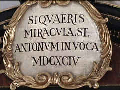 Zu den bekanntesten seiner Legenden gehört die Predigt am Ufer von Rimini: die Einwohner wollten ihn nicht hören, aber die Fische versammelten sich und streckten ihre Köpfe aus dem Wasser; dieses Wunder habe fast die ganze Bevölkerung der Stadt bekehrt. Als jemand die Gegenwart Christi im Sakrament der Eucharistie bezweifelte, ließ Antonius einen Maulesel bringen, der drei Tage nichts zu Fressen bekommen hatte; das Tier fiel, ohne das gereichte Futter zu berühren, vor Antonius nieder, weil der ihm mit der Hostie entgegentrat. Papst Gregor IX. nannte ihn, als er ihm zuhörte, "Schatztruhe der Heiligen Schrift". Der hl. Franziskus, der von Gelehrsamkeit nicht viel hielt und in ihr -nicht ohne Grund- eine der Ursachen für Stolz und Eitelkeit sah, erkannt durch Antonius, dass ein solides Studium der Glaubenswahrheiten und der hl.Schrift für den Erfolg ausschlaggebend ist. Er ernannte Antonius zum Rektor des ersten Studienhauses für Franziskaner. Von Oberitalien führte Antonius'Weg in die zweite Hochburg der von der katholischen Kirche Abtrünnigen, nach Südfrankreich. Auch hier wirkte seine Predigt und die Kraft seines Wortes in den Jahren 1224 bis 1227 im Kampf gegen die Albigenser und die Waldenser so überzeugend, dass man ihn den "Hammer der Ketzer" nannte. Dieser irreführende Titel wurde ihm aber nicht aufgrund von Härte und Gewalttätigkeiten verliehen, wie sie damals von seiten der Kirche ausgeübt wurden, sondern wegen der moralischen Wirkung seiner Mission. |